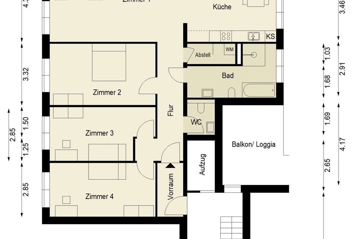Berechnet als (Monatliche Kaltmiete × 12) ÷ Kaufpreis